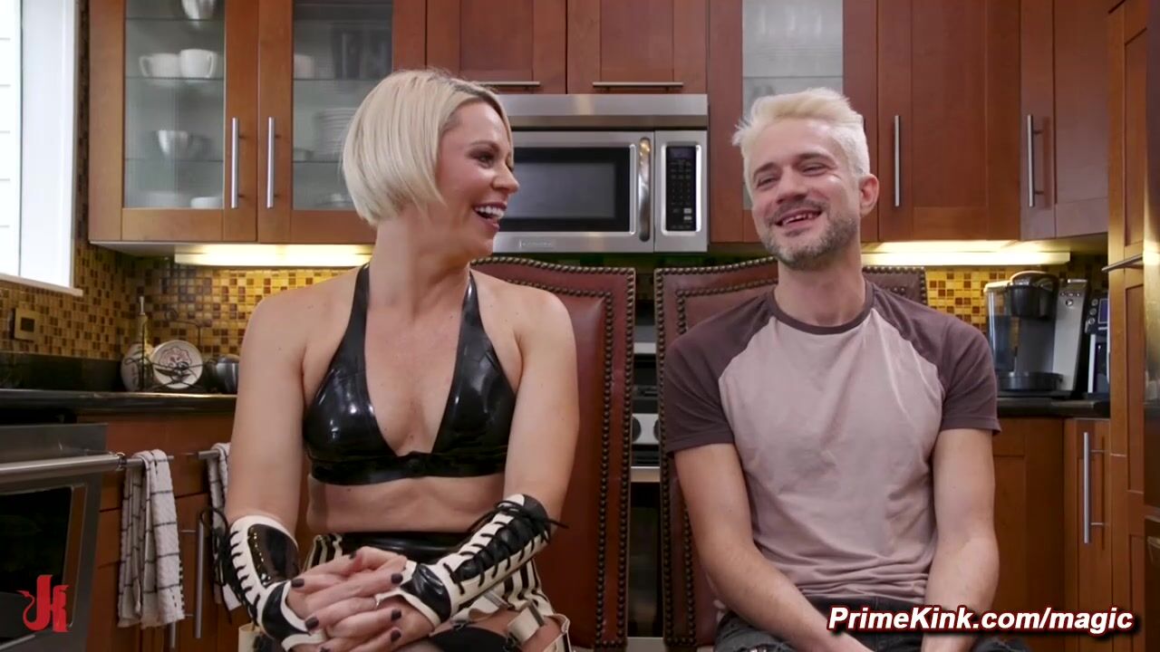 Blonde MILF femdom i nlatex Helena Locke torments with water blond submissive man Sherman Maus then in sixty nine position face sitting him down on the floor