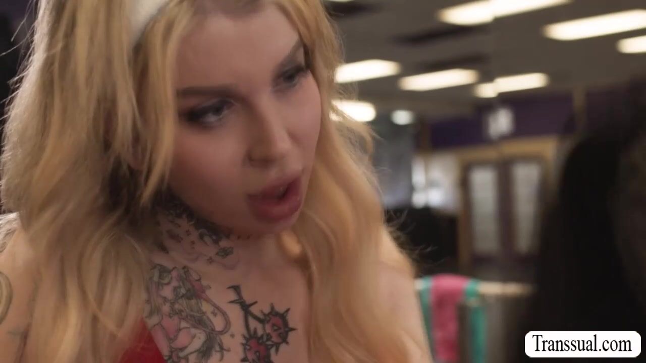 TS Gracie Jane fucks Queenie Sateen while dancing