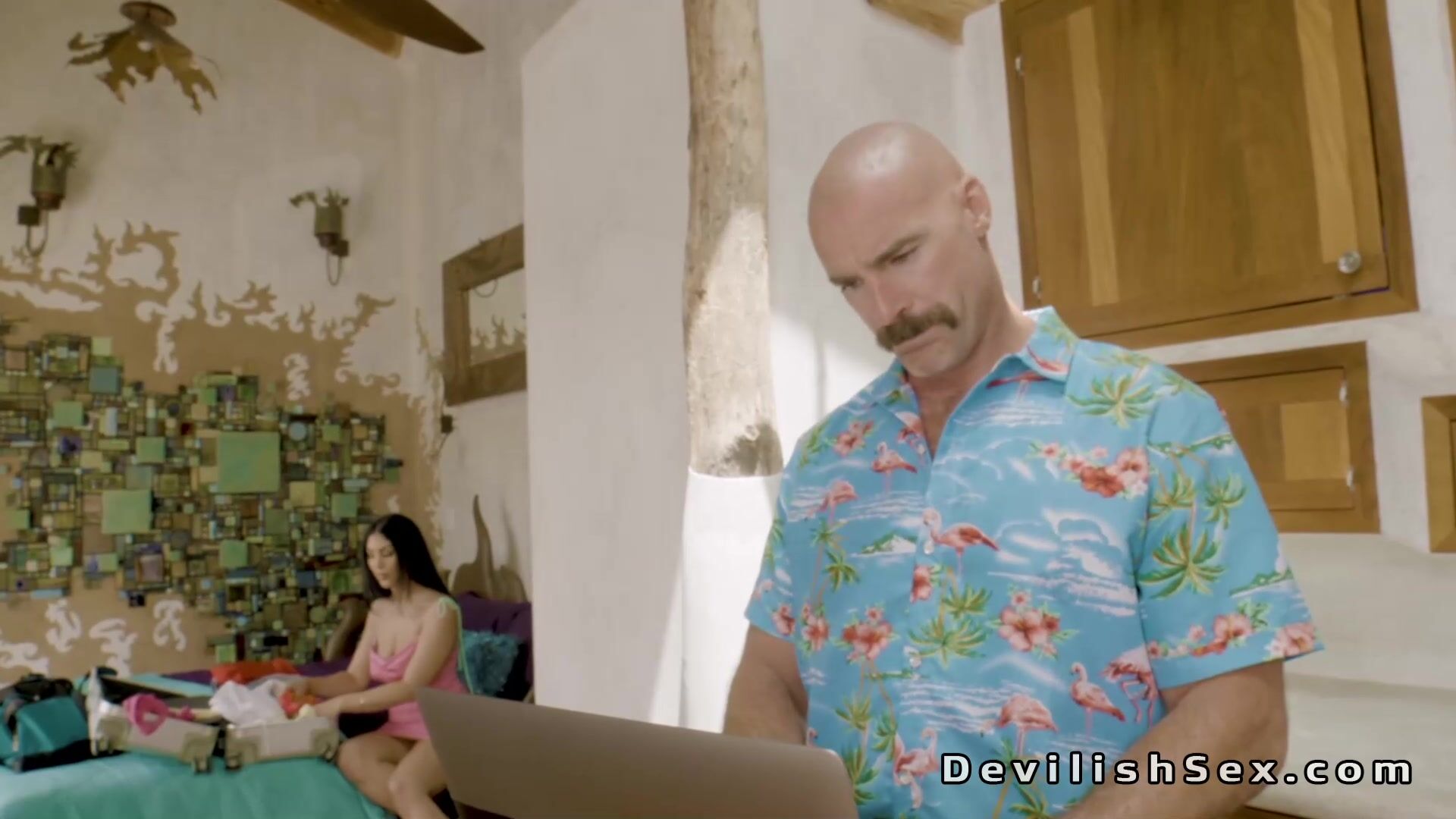 It is a hot day at the Pina Colada resort with Mr and Mrs Simmons who are acting Seth Gamble and Theodora Day and they have oral and hardcore sex in various position in the bed