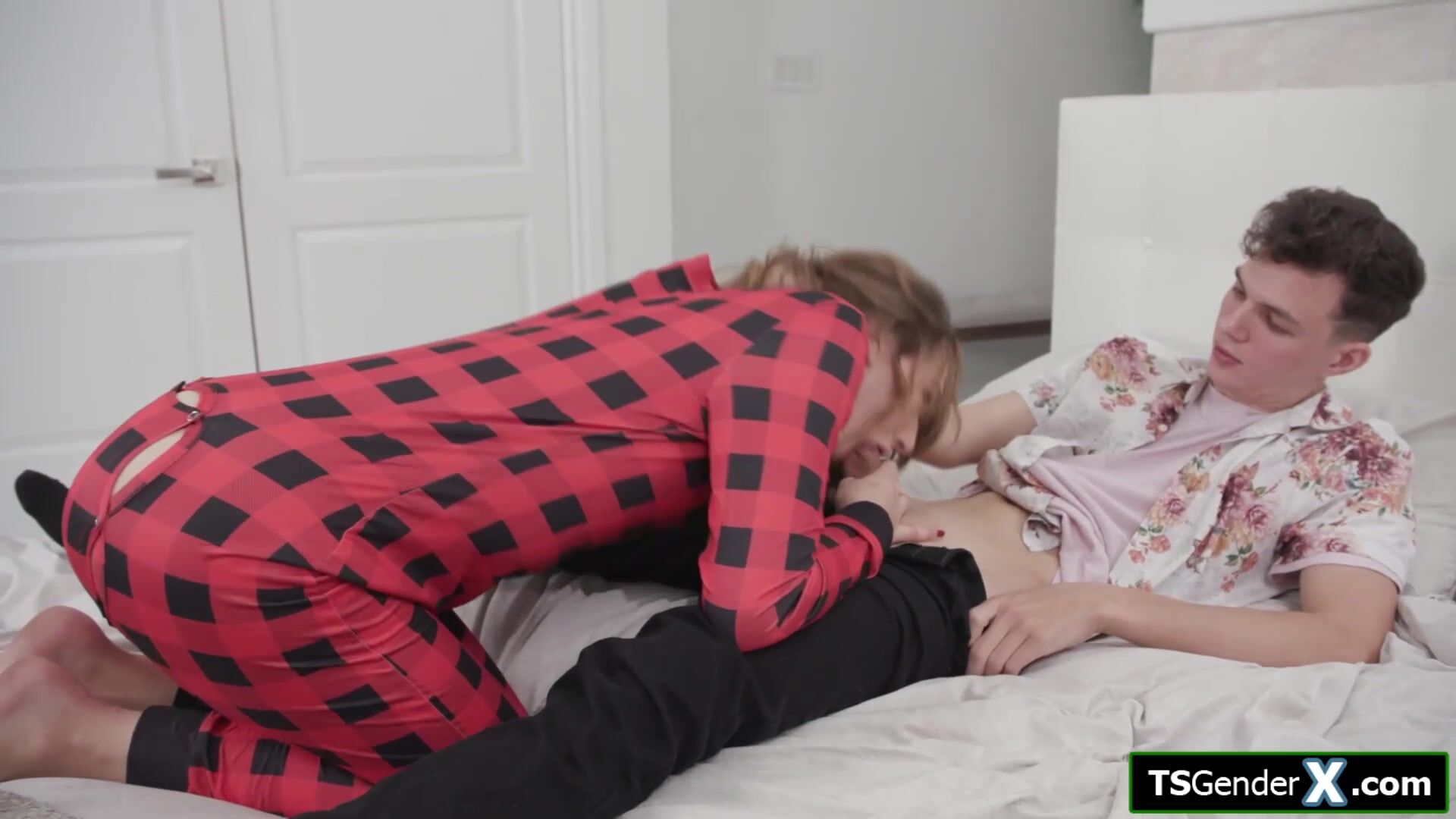 Trans Jayne Calloway is horny and enters her gfs stepbrothers room.The small tits shemale deepthroats his cock.The tgirl gets into a 69er so she can have her tranny dick sucked as well.The ts gives a double handjob before she is anal barebacked