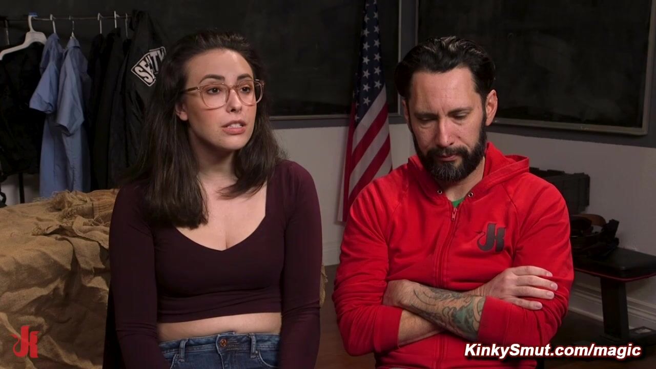 Dirty cop Tommy Pistol binds evidence clerk Casey Calvert in bent position and gags her with gagball then with a big cock anal fucks and fingers and vibrates