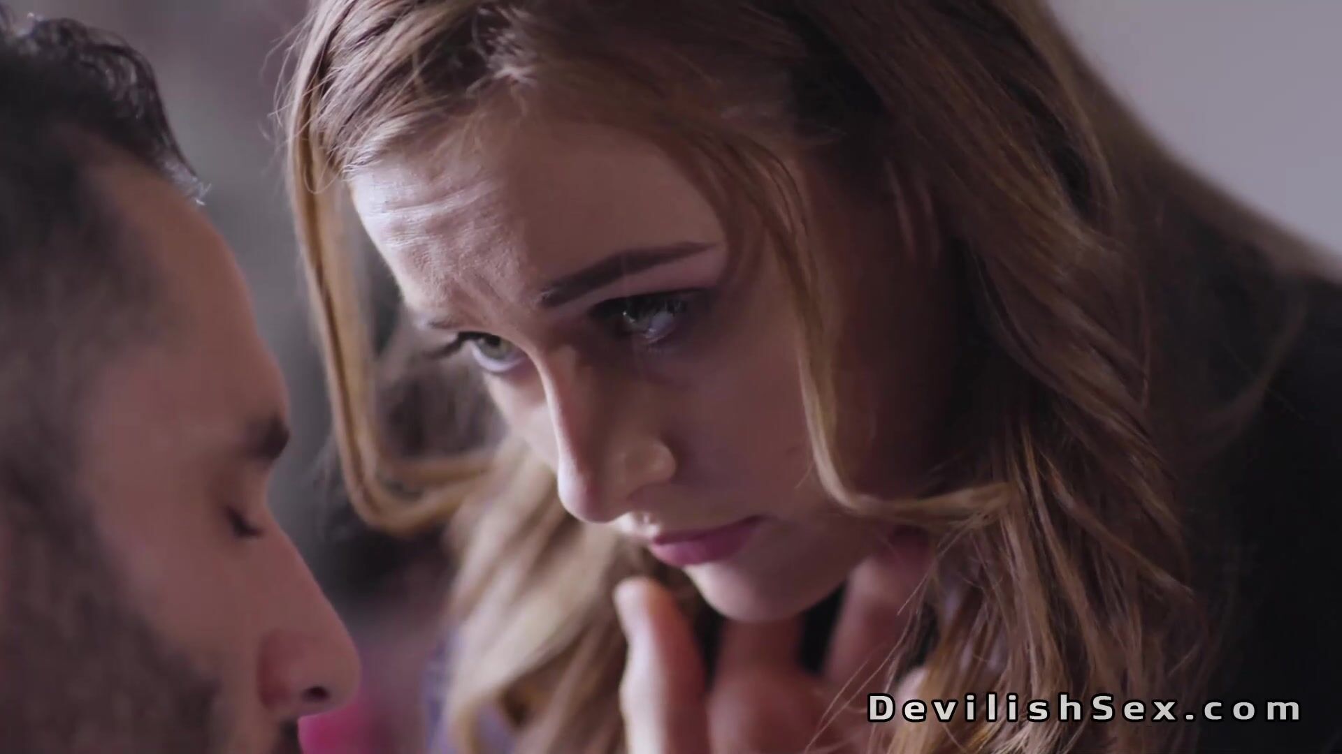 Beautiful blonde teen student Danni Rivers seduces and kisses dean Damon Dice then sideways on the desk takes his big cock in wet pussy before changes positions