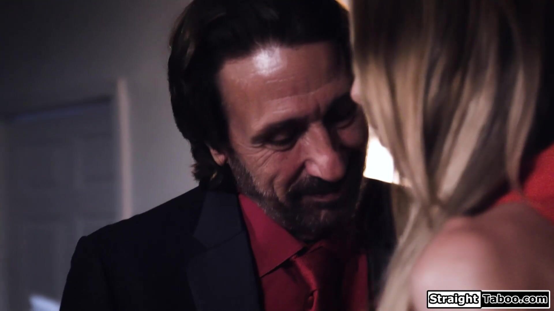 Blonde shows up at her first client and finds out its her professor.He and his stepdad will let her get used to the business and make her deepthroat their big hard cocks.The sweaty babe is pussy slapped and swaps between both guys big dicks