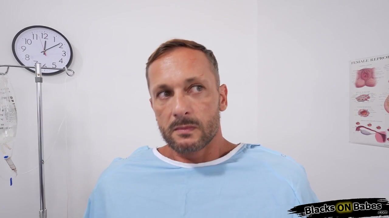 Ebony doctor Ashlyn Peaks is helping out her patient cum so she can examine his sperm.The big tits physician wears a sexy lingerie to get him turned on.The dude is playing with her big tits then goes licking and fucking her shaved pussy until he cums
