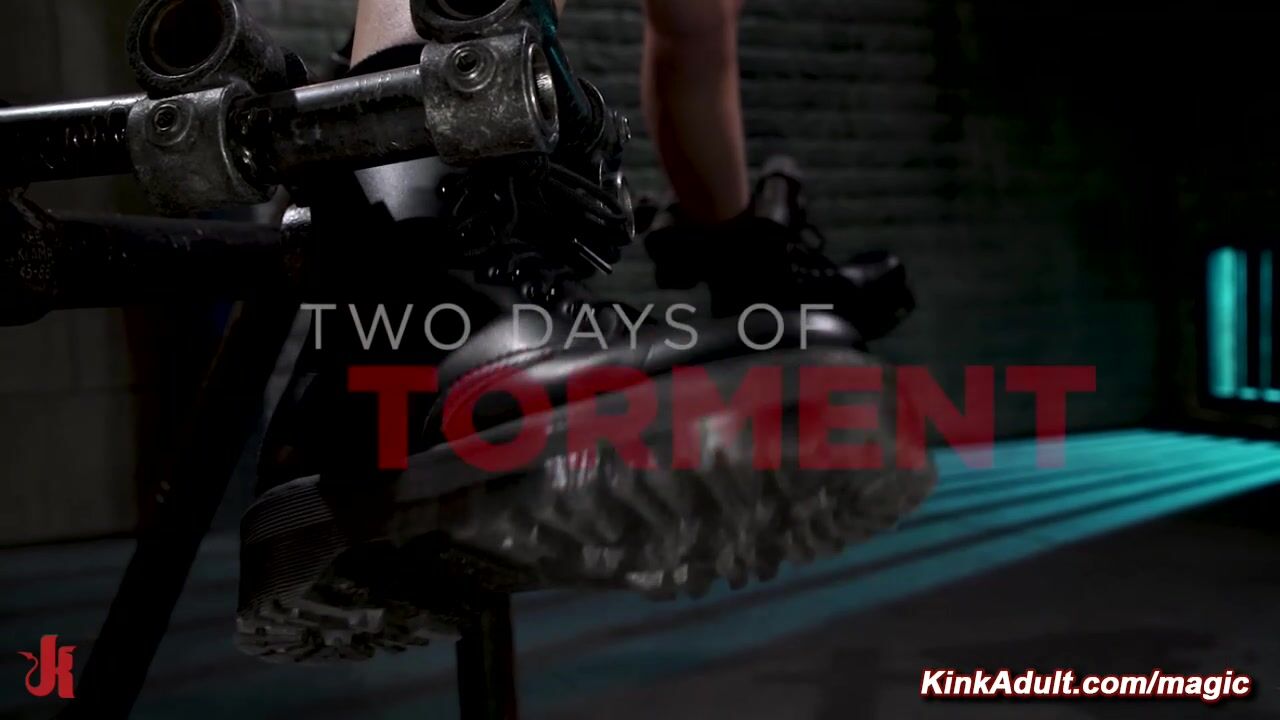 Little slave Kristen Scott in a predicament position with all of her weight resting on pussy then in next position with nipples clapmed pussy fingered by master The Pope