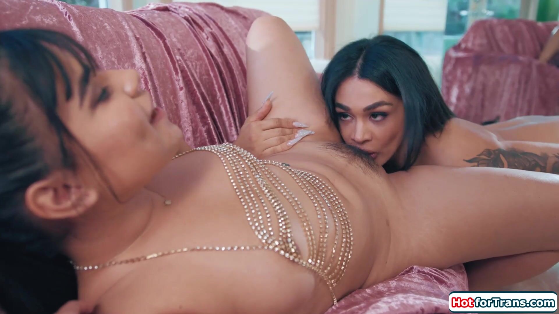 Busty latin tgirl photographer Eva Maxim is having feelings for her nude model Summer Col.The big tits shemale kisses the brunette and gets her boobs sucked.After Summer deepthroated the trannys dick shes pussy licked and fucked by the tattooed trans