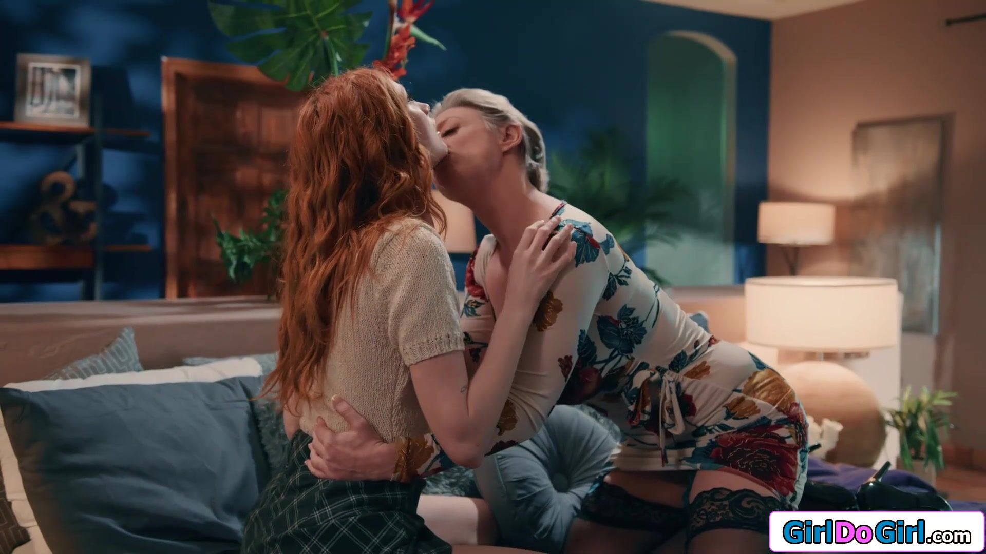 Small tits petite redhead Scarlet Skies is nervous for her date with busty dominant Dee Williams.The milf spanks the submissive ginger and pulls on her nipples.The mature blonde bounds her with belts and fingers and licks pussy before facesitting her