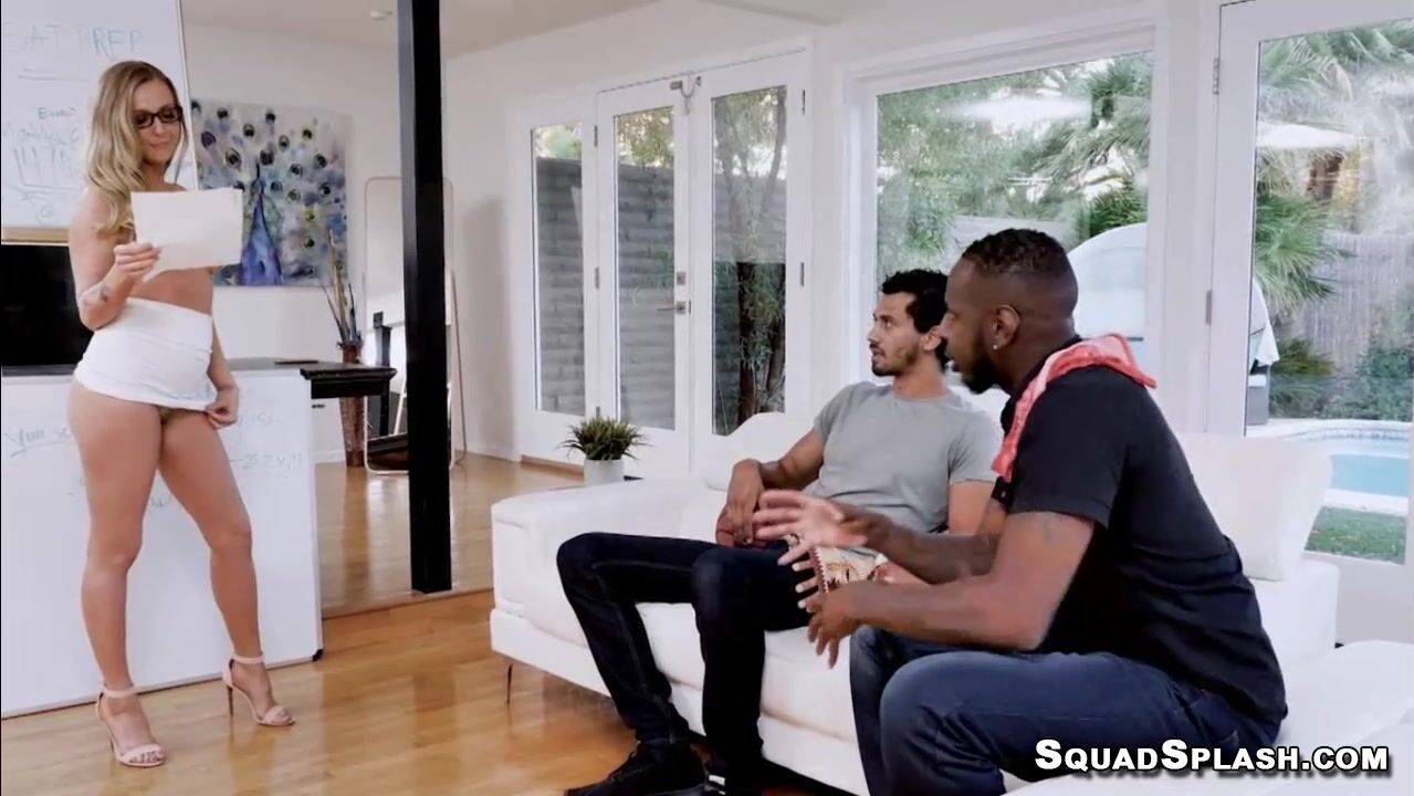 Horny dirty and hairy blonde slut Karla Kush gets amazing banging and she gives riding and oral blowjobs on two black big cocks in the living room in threesome