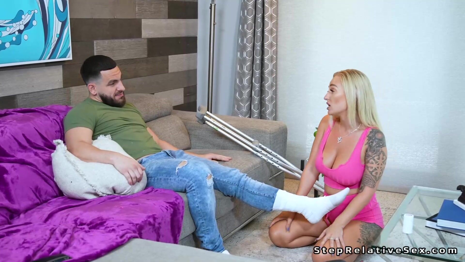 Curvy tattooed blonde stepsister Elana Bunnz role plays stepmom and cures stepbrother Peter Green then deep throats his big dick and fucks in doggy style position very hard