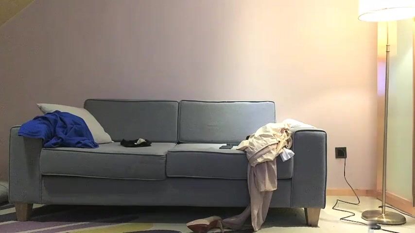 Busty chinesse girl, wearing high heels on the sofa, riding a high position and vigorously riding hard