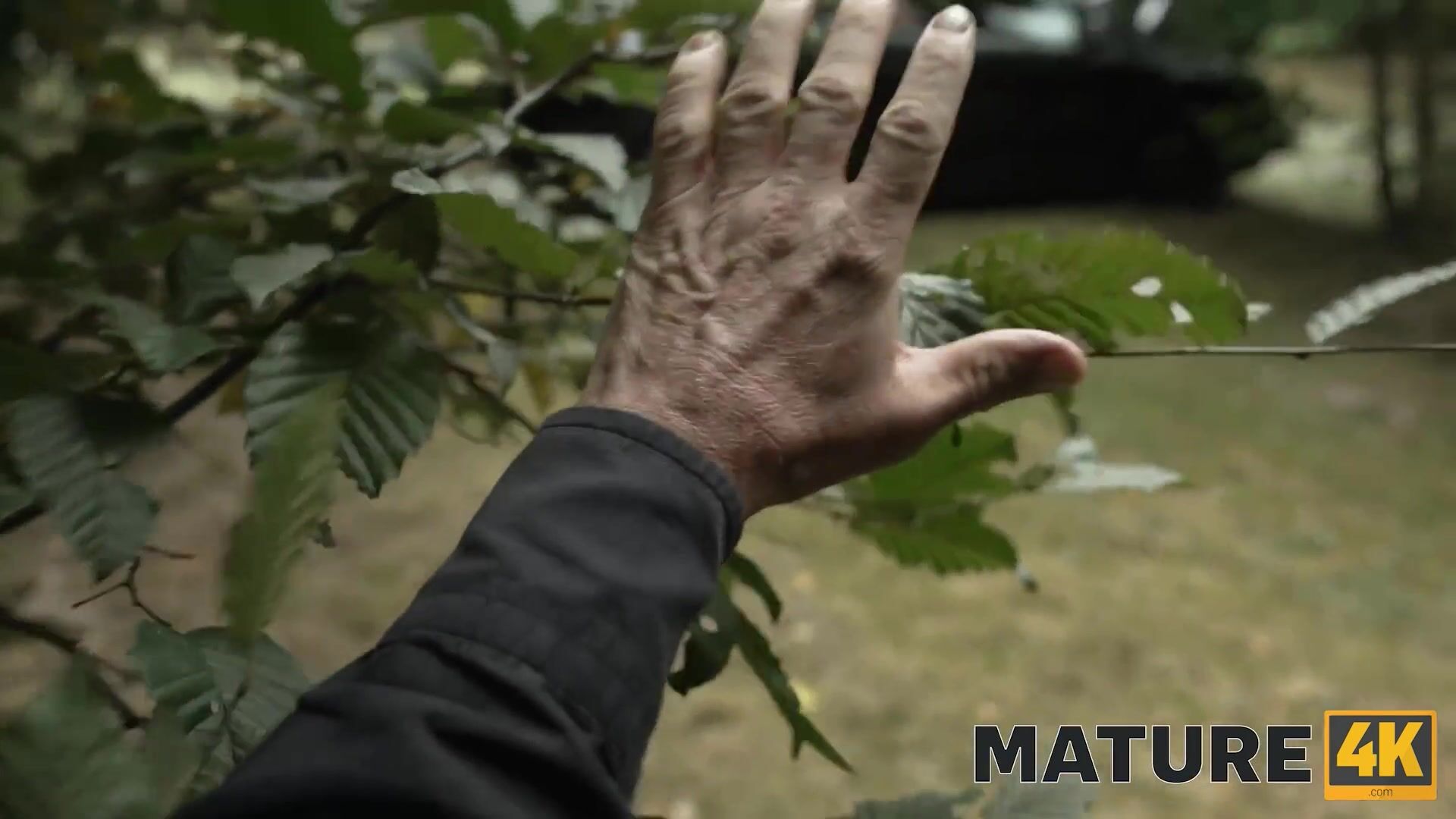 Brunette on high heels seduced a young guy in the woods and fucked in public