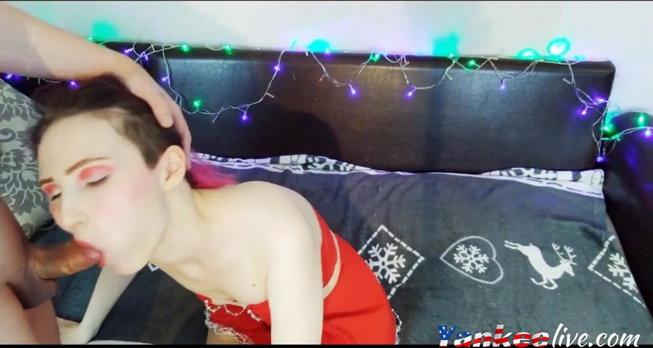 Santa's assistant gives beautiful blowjob a blowjob to a naughty russian guy.