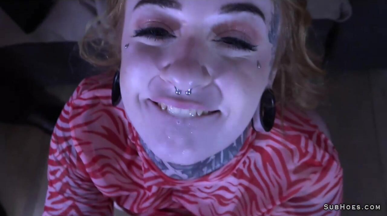 Redhead and horny submissive tattooed slut Azura Alii gets drilled in all holes with spanking and anal spitroasting while she gives oral blowjob in threesome